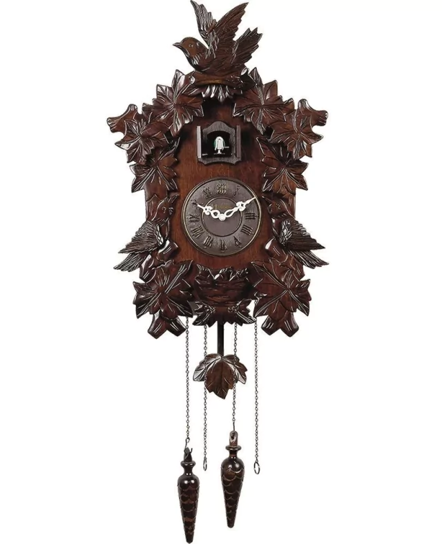 A cada hora o pássaro sai, bate as asas e abre o bico e canta CUCO-cuco, CUCO-cuco conforme o número de horas, sempre de 1 a 12 vezes.